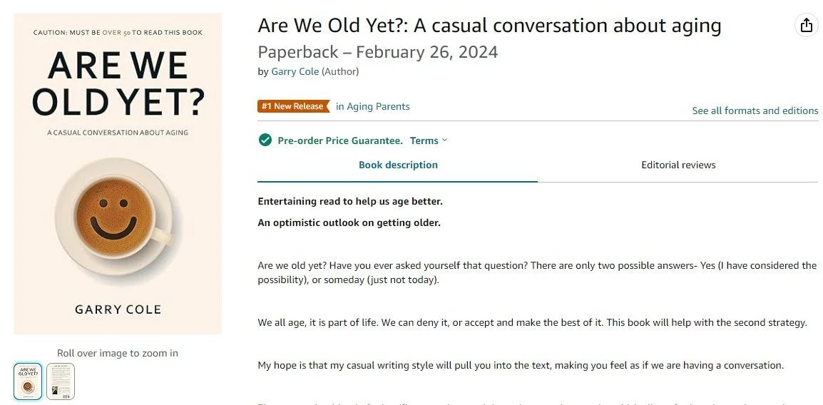 Thanks to everyone who bought the book. I must have more friends and family than I thought. Or maybe there are a lot of people at the age who are asking themself this question - Are We Old Yet?